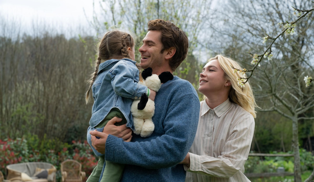 We Live in Time is a 2024 romantic drama directed by John Crowley and written by Nick Payne, starring Florence Pugh as Almut Brühl and Andrew Garfield as Tobias Durand. Structured through a non-linear narrative, the story traces a decade of the couple’s relationship as it moves between their impulsive first meeting, the years in which they build a shared life, and the period following Almut’s terminal diagnosis. The film combines domestic realism with a reflective exploration of time, memory, and the emotional architecture of long-term relationships.