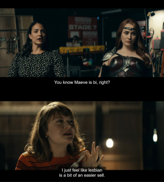 The team manager says to the couple, “I just feel like lesbian is a bit of an easier sell”. A scriptwriter adds, “Pew research shows that two feminine women in a relationship send a problematic message. America is more accepting of gays when they’re in a clear-cut gender role relationship, like Ellen and Portia”. At this point, Elena walks off the set and says to Maeve privately, “If they want a lesbian Ken doll, they can find someone else”. The conversation ends with plans to get back at Homelander.