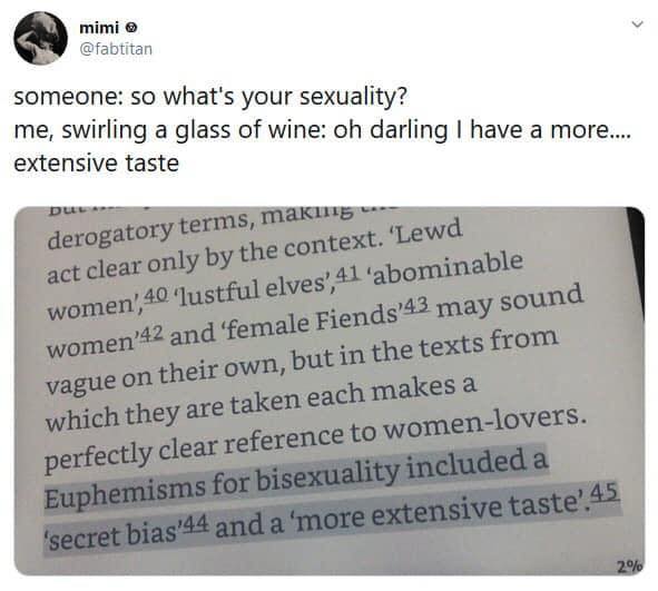 Woolf was instrumental in me seeing literary proof in my baby bi years that my bisexuality was legitimate, beautiful, and worthy of great art. Who can ever forget the description of kissing someone of the same sex for the first time as “a match burning in a crocus”? That image still races to my mind when I kiss a woman for the first time— along with the sensation of fireworks, of course.