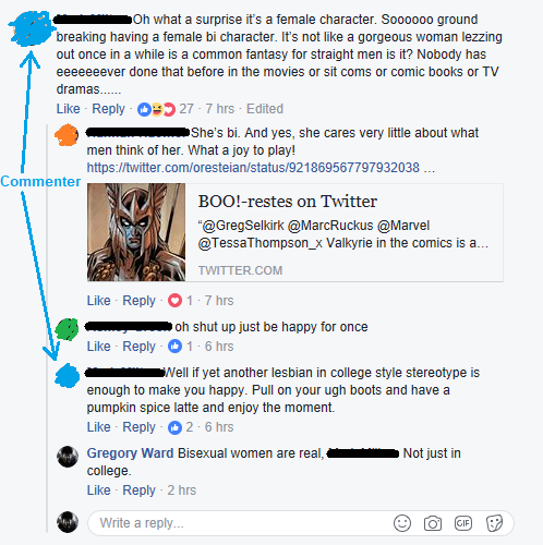 The above quote was taken from a comments section from the announcement that Valkyrie in the new Thor: Ragnarok movie is canonically bi, per American actress, Tessa Thompson, who is playing her in the new film.
