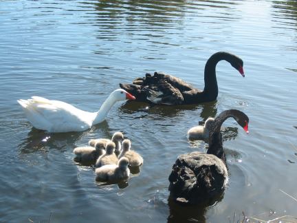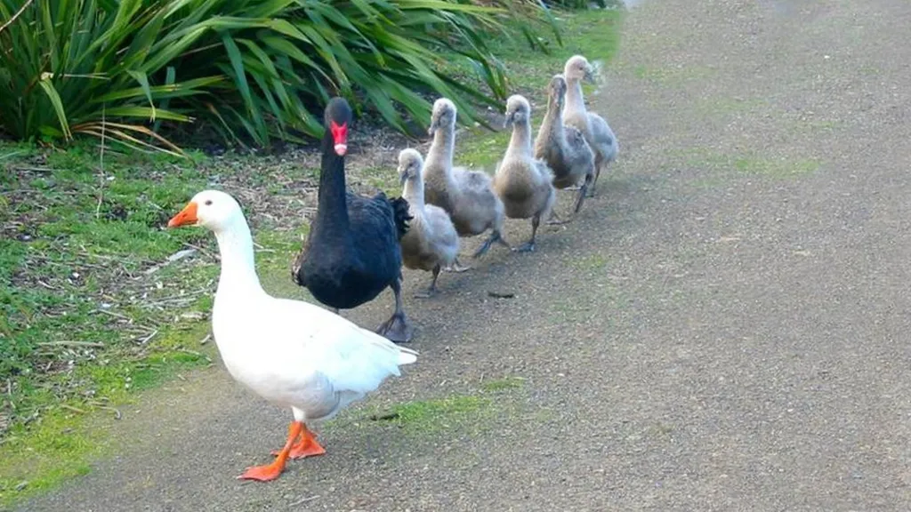 Aunque al principio Thomas se llevaba mal con el recién llegado, una vez que las crías nacieron, ayudó a criar a los cisnes como si fueran suyos — todas las 68 crías que nacieron en un periodo de seis años, a menudo siendo un padre más dedicado que los propios cisnes.